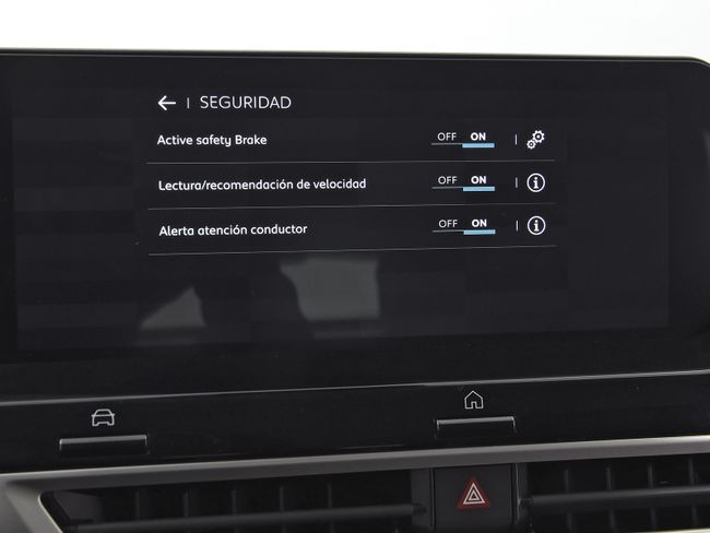 - Sistema de alarma de colisión: activa las luces de freno con asistencia de frenado, sistema antiatropello peatones/ciclistas, monitorización del conductor y frenado a baja velocidad de 30 Km/h como mínimo aviso visual/ acústico, distancia programable y funciona por debajo de 50 km/h / 30 mph