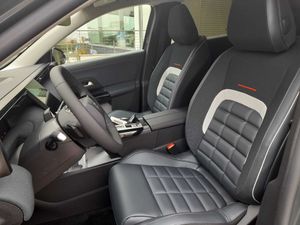 - Asientos de tela (material principal) y de cuero sintético (material secundario)