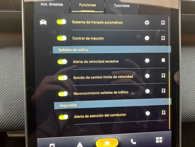 - Sistema de alarma de colisión: activa las luces de freno con asistencia de frenado, sistema antiatropello peatones/ciclistas y frenado a baja velocidad de 7 Km/h como mínimo aviso visual/ acústico, distancia programable, funciona por encima de 130 km/h / 78 mph, funciona por encima de 50 km/h / 30 mph, funciona por debajo de 50 km/h / 30 mph y monitorización de patrón de conducción