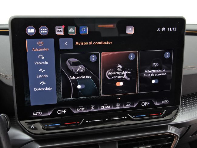 - Sistema de alarma de colisión: activa las luces de freno con asistencia de frenado, sistema antiatropello peatones/ciclistas, monitorización del conductor y frenado a baja velocidad aviso visual/ acústico y monitorización de patrón de conducción