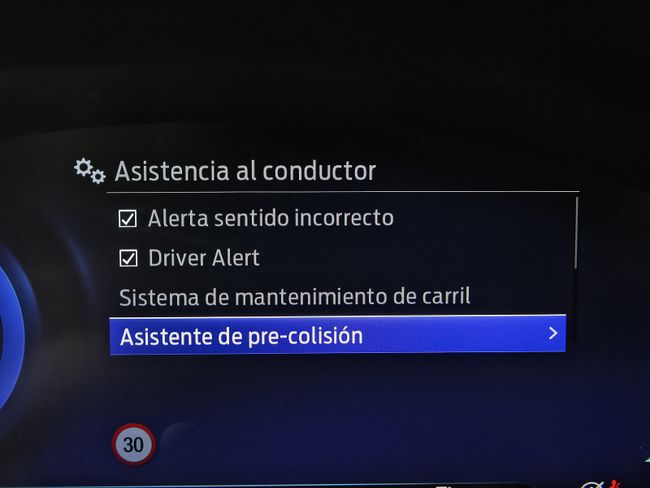 - Sistema de alarma de colisión: activa las luces de freno con asistencia de frenado, sistema antiatropello peatones/ciclistas, monitorización del conductor y frenado a baja velocidad de 5 Km/h como mínimo aviso visual/ acústico, funciona por encima de 50 km/h / 30 mph y funciona por debajo de 50 km/h / 30 mph