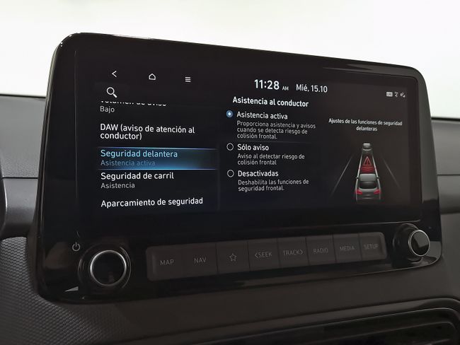 - Sistema de alarma de colisión: activa las luces de freno con asistencia de frenado, sistema antiatropello peatones/ciclistas, monitorización del conductor y delantero y trasero de 5 Km/h como mínimo aviso visual/ acústico, distancia programable, funciona por encima de 130 km/h / 78 mph, funciona por encima de 50 km/h / 30 mph y funciona por debajo de 50 km/h / 30 mph