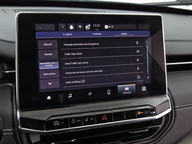 - Sistema de alarma de colisión: activa las luces de freno con asistencia de frenado, sistema antiatropello peatones/ciclistas, monitorización del conductor y frenado a baja velocidad aviso visual/ acústico, distancia programable, funciona por encima de 130 km/h / 78 mph y funciona por encima de 50 km/h / 30 mph