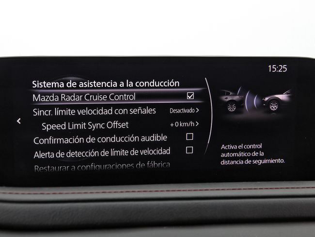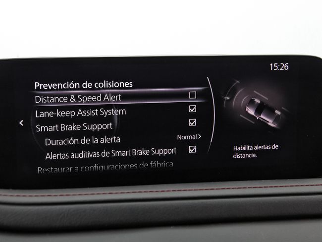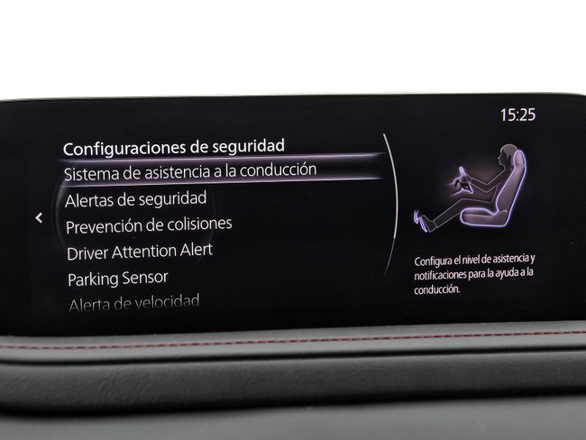 - Sistema de alarma de colisión: activa las luces de freno con asistencia de frenado, sistema antiatropello peatones/ciclistas y frenado a baja velocidad de 4 Km/h como mínimo aviso visual/ acústico, funciona por encima de 130 km/h / 78 mph, funciona por encima de 50 km/h / 30 mph, funciona por debajo de 50 km/h / 30 mph, incluye tráfico frontal en cruce y monitorización de patrón de conducción