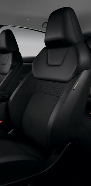 - Asientos de tela (material principal) y de cuero sintético (material secundario)