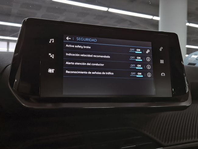 - Sistema de alarma de colisión: activa las luces de freno con asistencia de frenado, sistema antiatropello peatones/ciclistas, monitorización del conductor y frenado a baja velocidad de 10 Km/h como mínimo aviso visual/ acústico, distancia programable, funciona por encima de 50 km/h / 30 mph y funciona por debajo de 50 km/h / 30 mph
