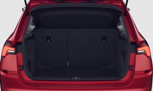 - Asientos traseros de tres plazas de tipo banco de orientación delantera abatibles en el suelo con banqueta fija y respaldo abatible asimétrico
