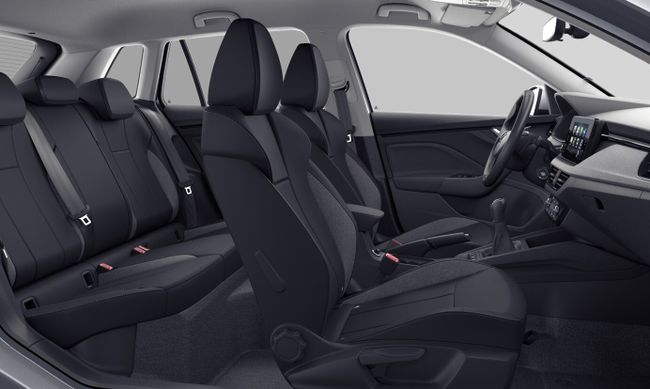 - Asiento delantero del conductor y acompañante individual, ajuste longitudinal manual, ajuste manual en altura y ajuste lumbar manual con ajuste manual del respaldo