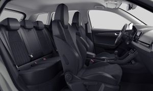 - Acabados de lujo: pomo de la palanca de cambios en aluminio y cuero, consola central en negro piano, puertas en símil aluminio y tablero en símil aluminio